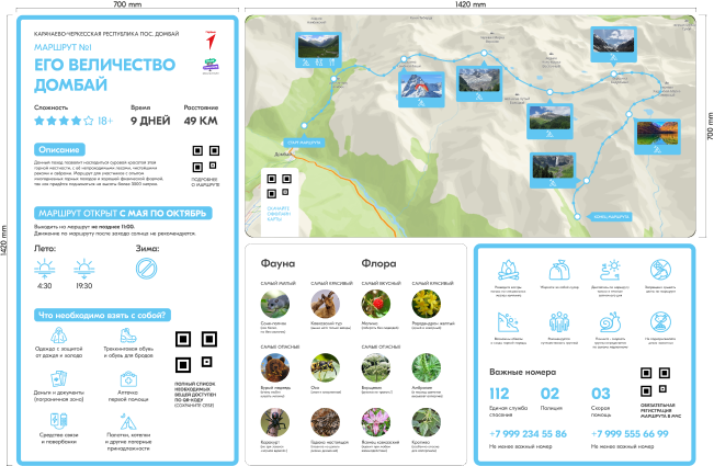 На ключевых точках размещается фотография вида, который турист сможет увидеть, дойдя туда, а также иконки-обозначения удобств: кемпинг, туалет, кухня и т.д.